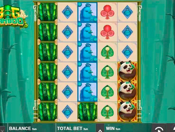 Онлайн слот Big Bamboo – это смесь легкой атмосферы восточной природы и огромного выигрышного потенциала. Миролюбивая панда превратиться в дикого зверя вместе с запуском вращений. Игра оформлена в виде красочных бамбуковых джунглей с 5 барабанами и 6 рядами игровых символов — животных в мультяшном стиле. Есть и более стандартные значки – карточные масти.